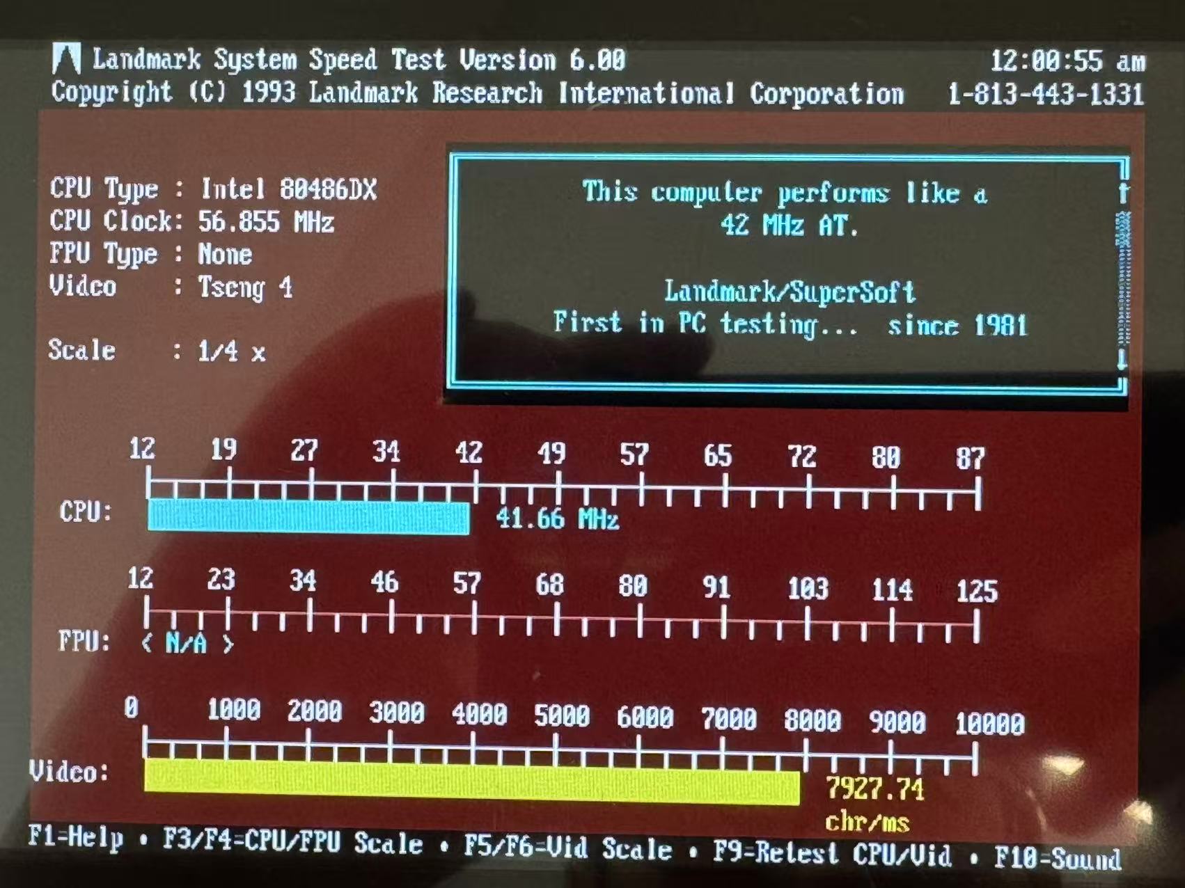 A rough v0.1 end‑to‑end result: about +35% per Landmark 6 benchmarks, reaching roughly 486SX‑20 territory.